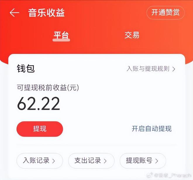 原来,法老向网友公开了音乐收入!他晒出了自己在音乐平台的收益。