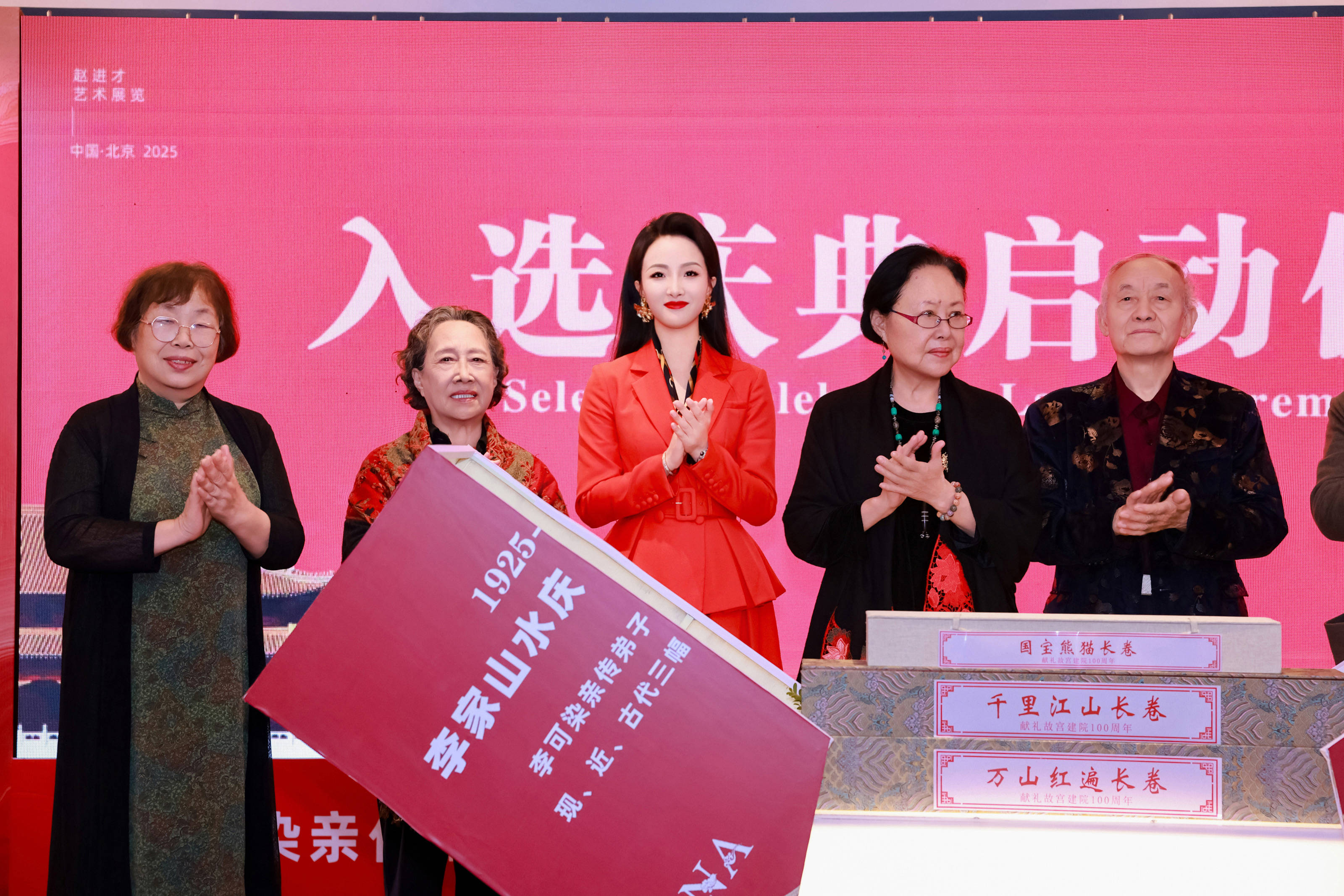 北京讯 2025年9月27日,为隆重纪念故宫博物院建院100周年(1925-2025),李可染亲传弟子赵进才先生三幅名作入选李家山水庆故宫博物院100周年启动仪式在北京长安俱乐部举行。活动现场文化艺术界名家云集,表演艺术家斯琴高娃、孙桂田、马德华、郝爱民、王卫国等悉数到场。在众多艺术家中,北京亮月影视传媒有限公司创始人、董事长,同时也是重大革命历史题材电视剧《春天的故事》总出品人、总制片人项亮月女士以文化企业家的身份跨界出席,身着大红色高定职业套装惊艳亮相成为活动现场一道独特的风景,引发了媒体与公众的广泛关注。
