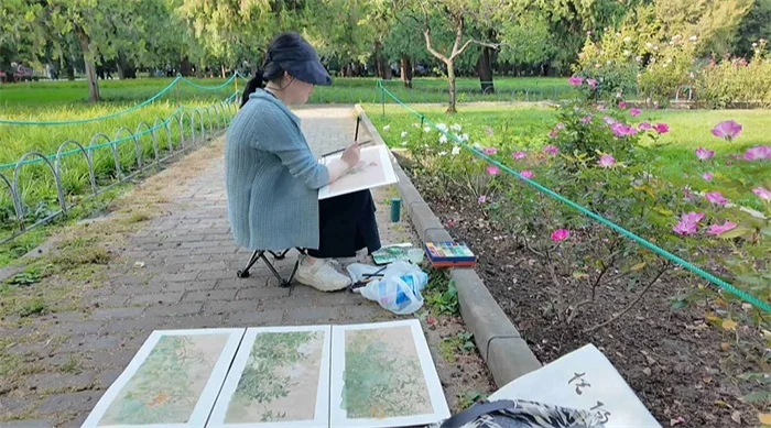 作为明清皇家坛庙的天坛,如今以开放的姿态,成了艺术与自然对话的场域。《书画里的中国》与北京时间 APP 透过直播,把万娟调整构图、晕染色彩的细节送到眼前,也让我们看见 “古园的格局与今人的笔墨、实景的花草与纸上的意境” 如何在午后时光里共生。中式绘画的美,从来离不开对真实景致的感知与提炼。接下来,我们还会继续在笔墨与园景的交织里,发掘更多中国艺术的鲜活表达。