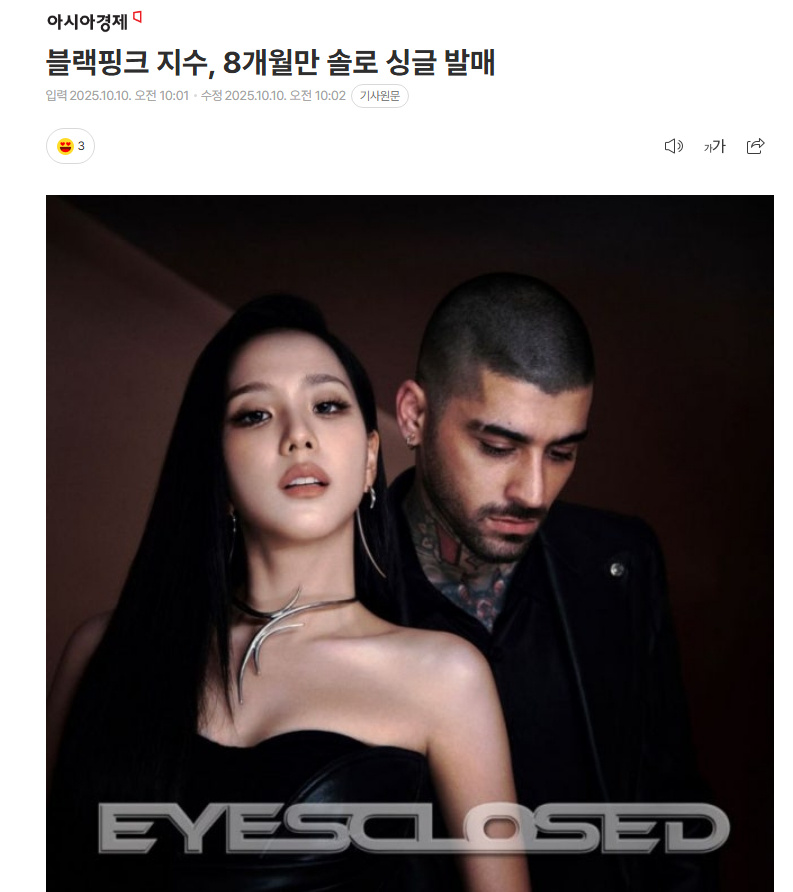 智秀于当天通过国内外各大音源平台发布了新单曲《EYES CLOSED》。这是自2月她发行迷你专辑《AMORTAGE》之后,时隔8个月的新作。