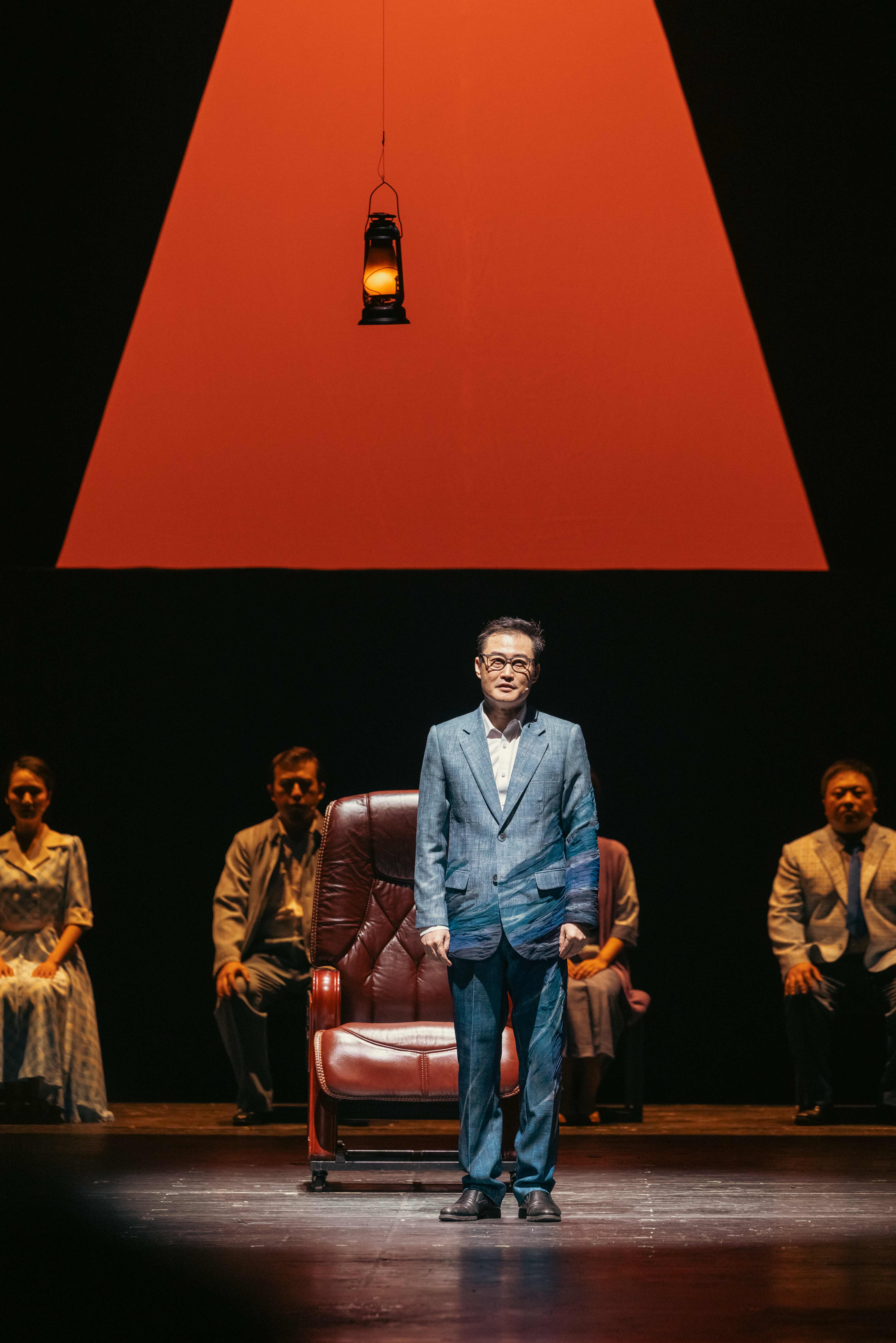 话剧《沧浪之水》既是一部有着扎实充分的戏剧性冲突的剧作,又是一部着力拓展心理空间的表现性戏剧。池大为在剧情的推进中经常提及屈原、司马迁、嵇康、陶渊明、李白、杜甫、苏东坡、文天祥、曹雪芹、谭嗣同等怀才不遇,又光芒四射的历史人物,是在自我与古人之间建构起一条绵延恒久的精神对话渠道,可视为知识分子独有的面对现实处境与苦闷内心所进行的一种自况与救赎。剧作所采用的一群戴着白色面具的群众演员,像纺织起的一只无形的大网,将池大为团团包围的表演形式,暗喻与代表现实或超越现实的力量,形成强大的力量逼迫和诱导他必须作出适应和改变,其极强的表现性意味和作用颇为震撼人心。剧作所构建的多重空间和运用的多种手段,有力地增强了剧作的表现力和感染力,父亲留下的那盏煤油灯所传递的温暖意象,申科长这个人物使用的戏曲唱腔和“脸谱”元素,象棋这一中国文化元素在演员表演中的形象意味,场与场之间的连接的“滴答滴答”的水滴声,空荡舞台上那把象征权力的座椅和一盏明亮高悬的灯,以及让已升为厅长的池大为独立于这个空间之中,穿过时间与年轻的自己对视,都能让人对人生和官场产生无尽的遐想。