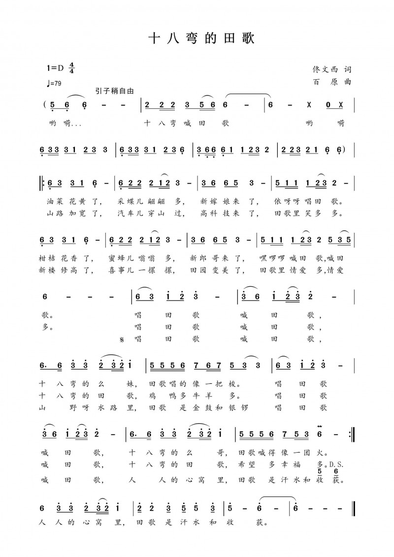 《十八弯的田歌》巧妙地将民间劳动号子与现代作曲技法相融合,作品以蜿蜒起伏的“十八弯”田埂为意象,通过丰富的音乐语言,生动描绘了一幅充满生机的乡村劳作画卷。旋律既保留了传统田歌的质朴与悠扬,又赋予了其崭新的时代气息,仿佛让听众置身于广袤的田野之间,感受到劳作的艰辛与收获的喜悦,聆听到来自土地最深沉的呼吸。