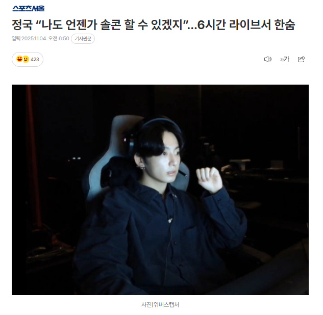 3日,防弹少年团田柾国在粉丝社区Weverse进行了约6个小时的直播。他以特有的问候打开了氛围,通过游戏、即兴唱歌、一起看YouTube、汤饭吃播等,与1110万观众实时互动。