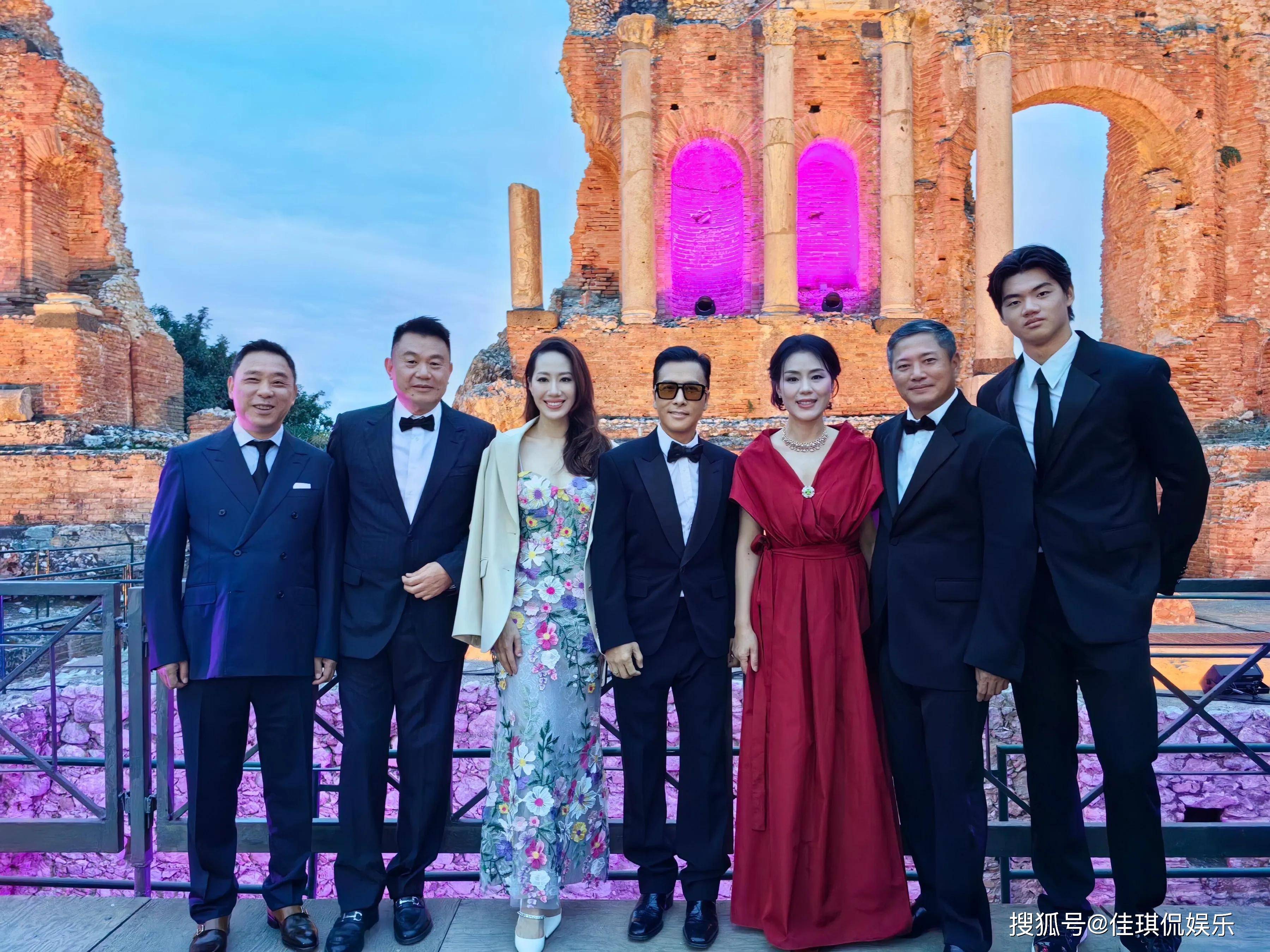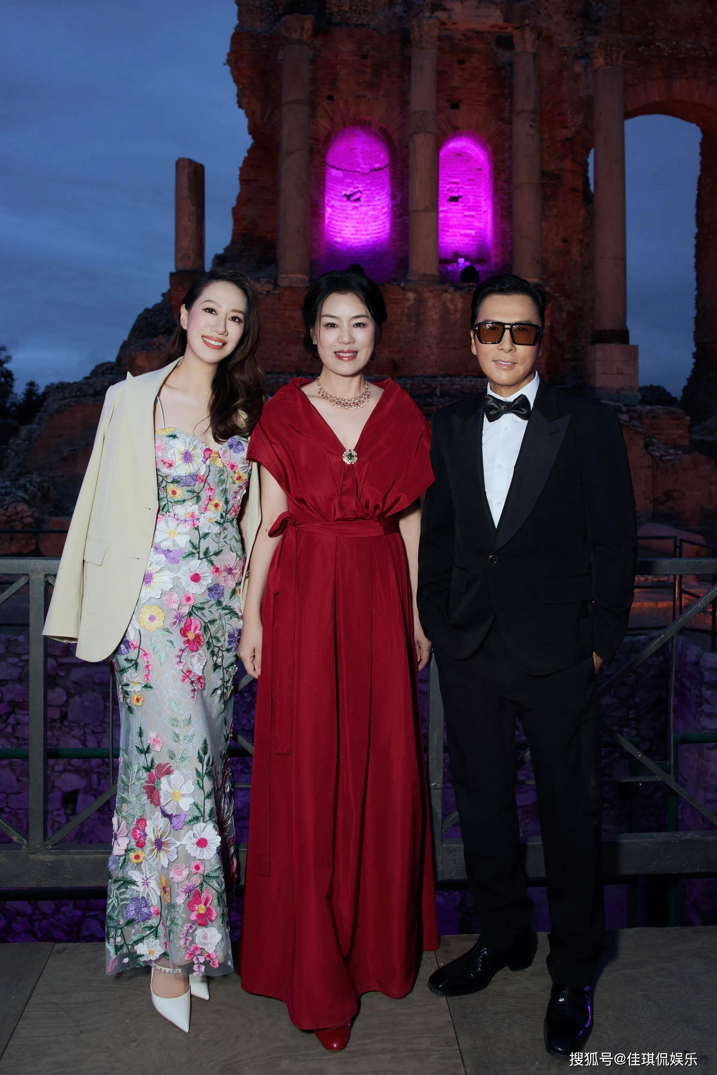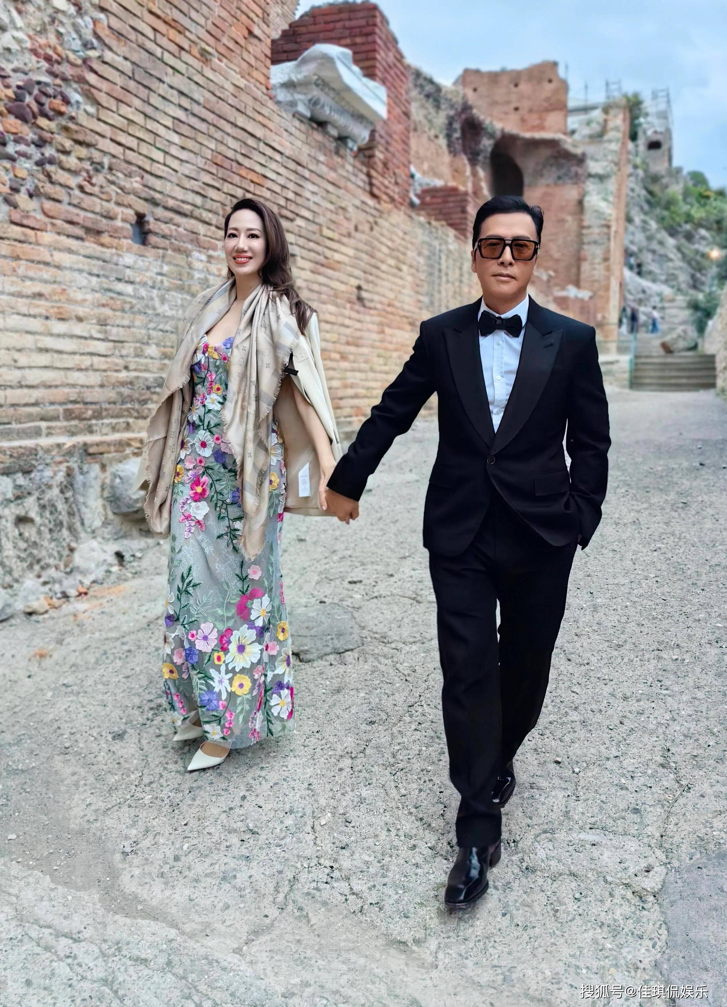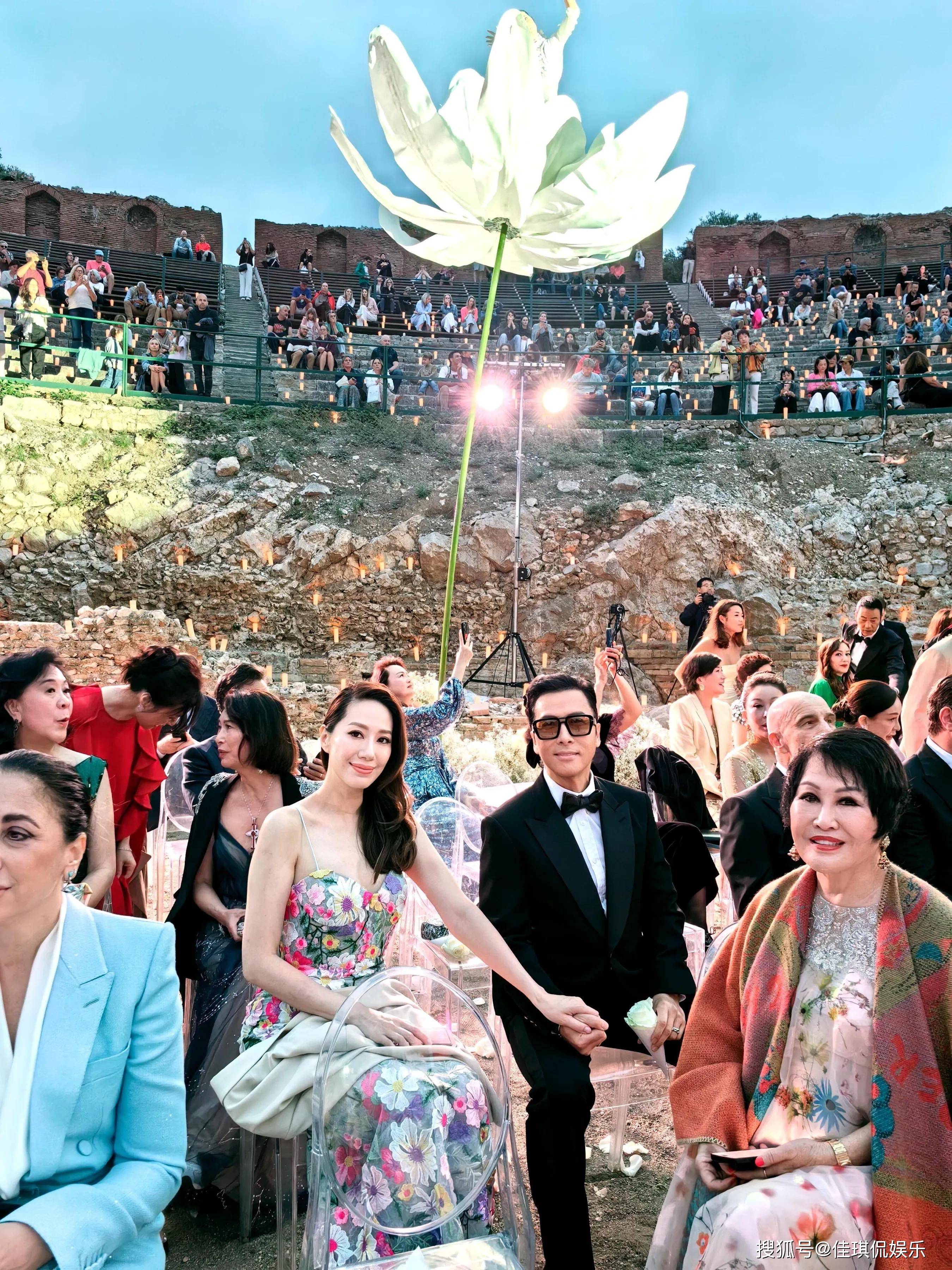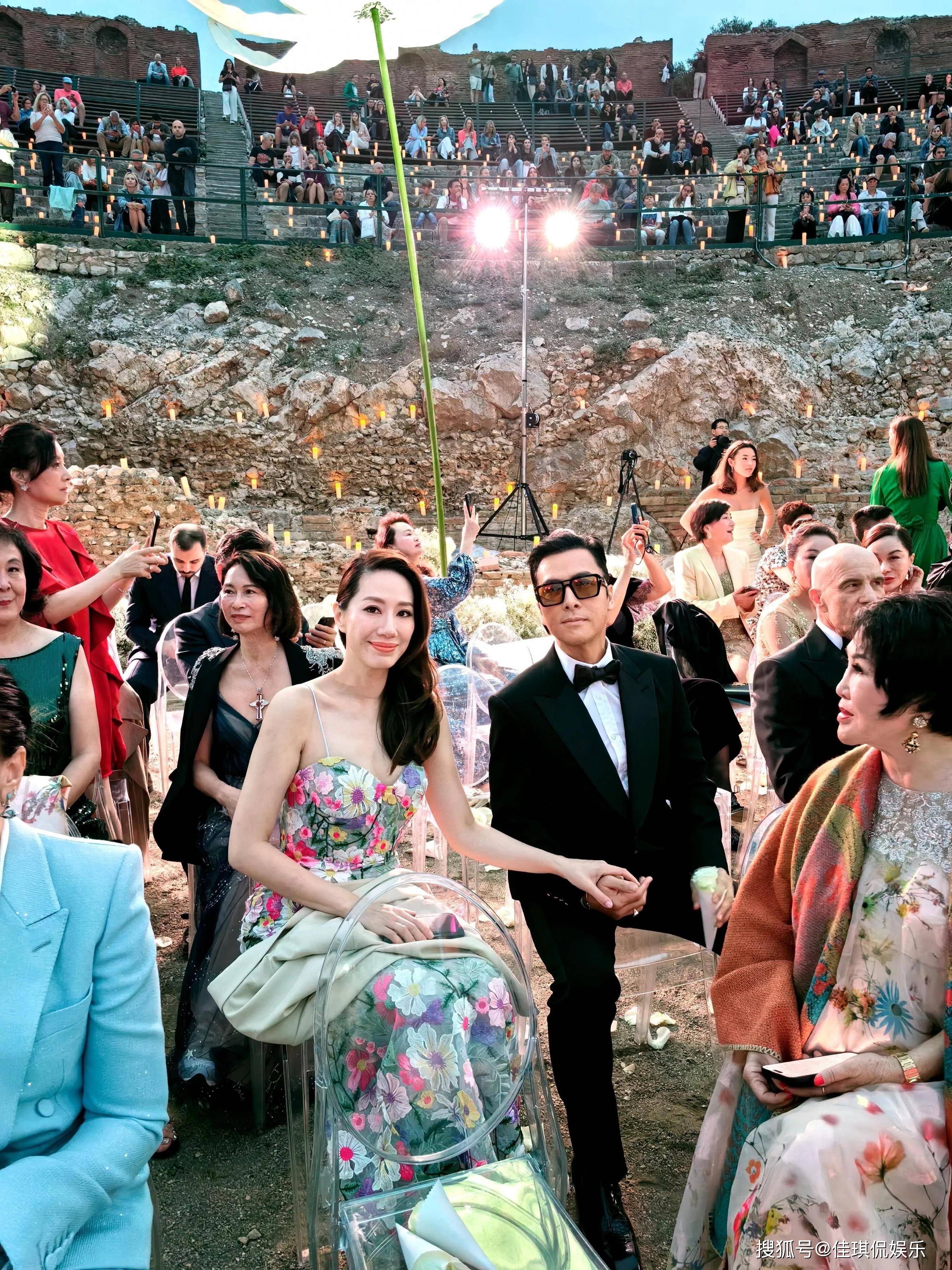 甄子丹和妻子汪诗诗来到了好友女儿的婚礼。这场婚礼在意大利西西里岛的陶尔米纳千年古希腊剧院里举行的。甄子丹和妻子牵手观礼,汪诗诗穿着一条花卉吊带礼服,她和甄子丹很般配。两人比当天的新郎新娘还要甜蜜,抢尽了风头。