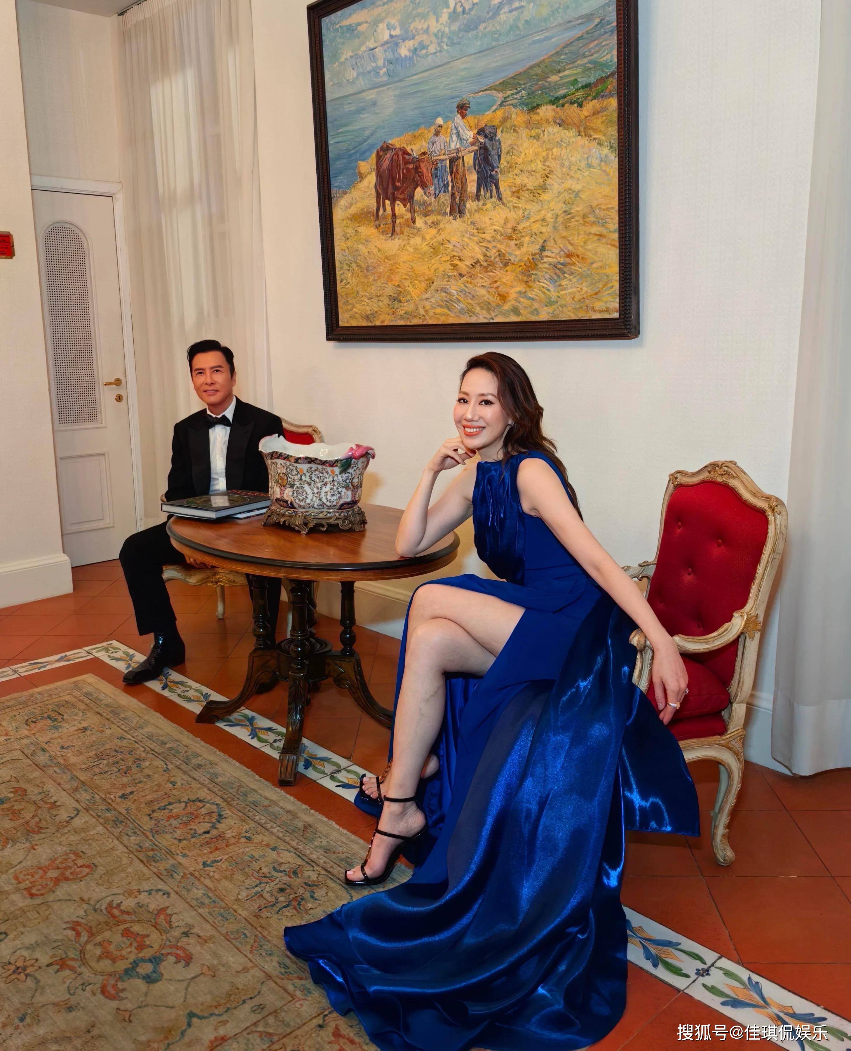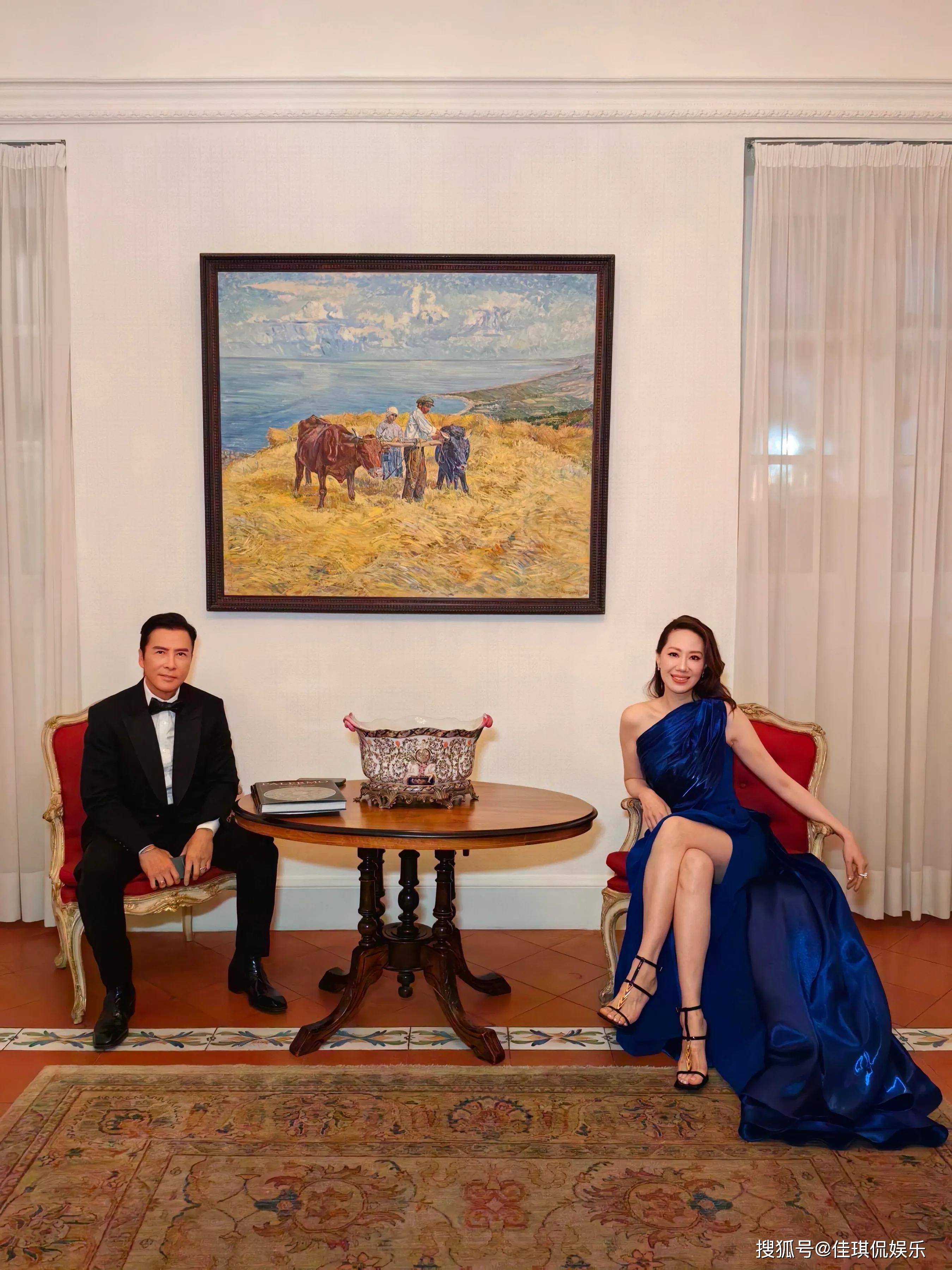 任达华和妻子琦琦也来参加了这场婚礼,琦琦身穿绿色长裙,很有意大利的浪漫气息。琦琦手拿白玫瑰和任达华一起自拍,他们夫妻俩也很甜蜜幸福。