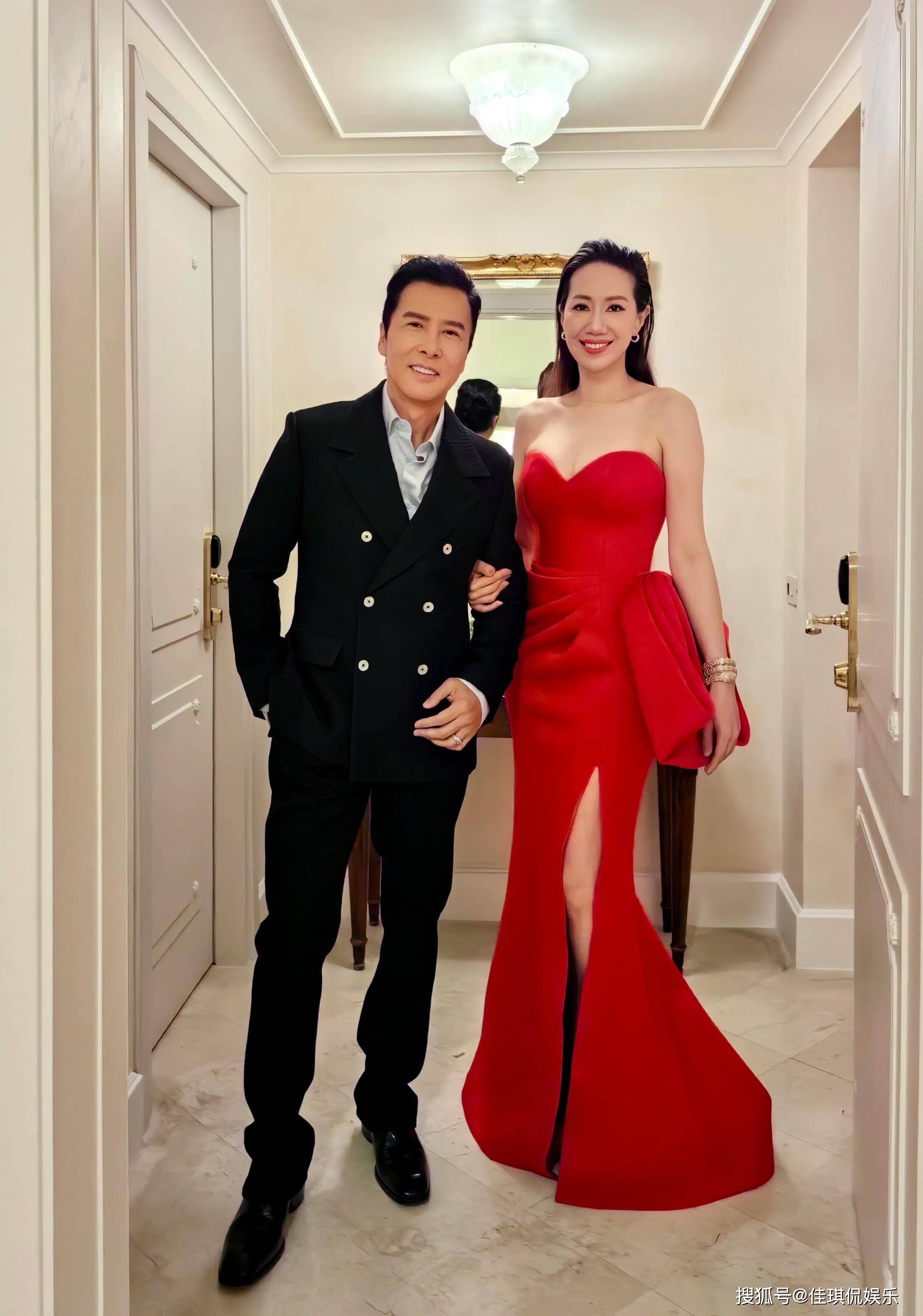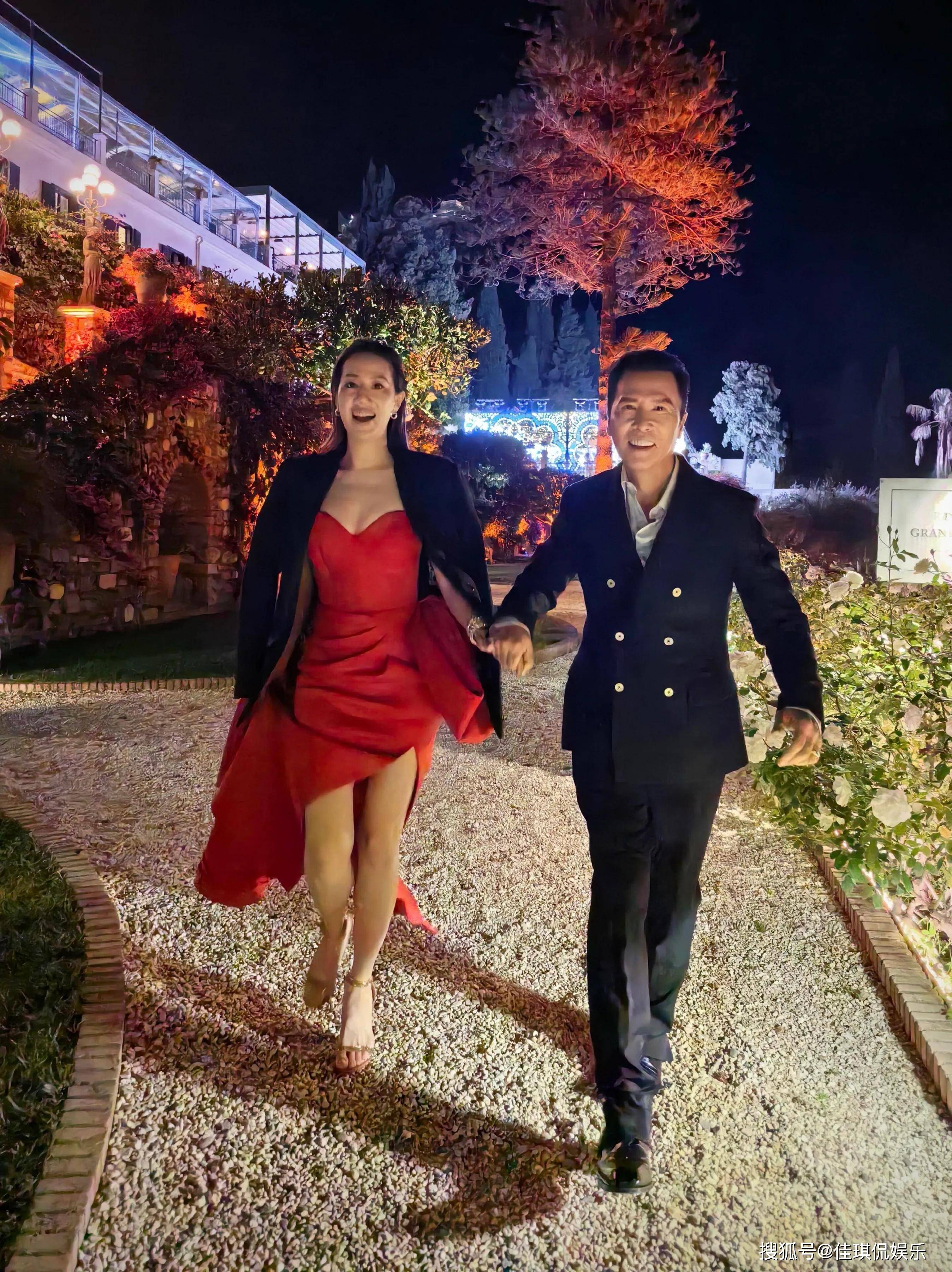 汪诗诗在这场婚礼上还换了第三套礼服,一套艳丽的红色抹胸礼服,她露出漂亮的肩颈,这条红裙很美,她是西西里岛的红玫瑰。甄子丹把领结摘了,两人牵手走在夜色里,简直就是电影级画面。两人在婚宴上甜蜜合影,羡煞旁人啊。