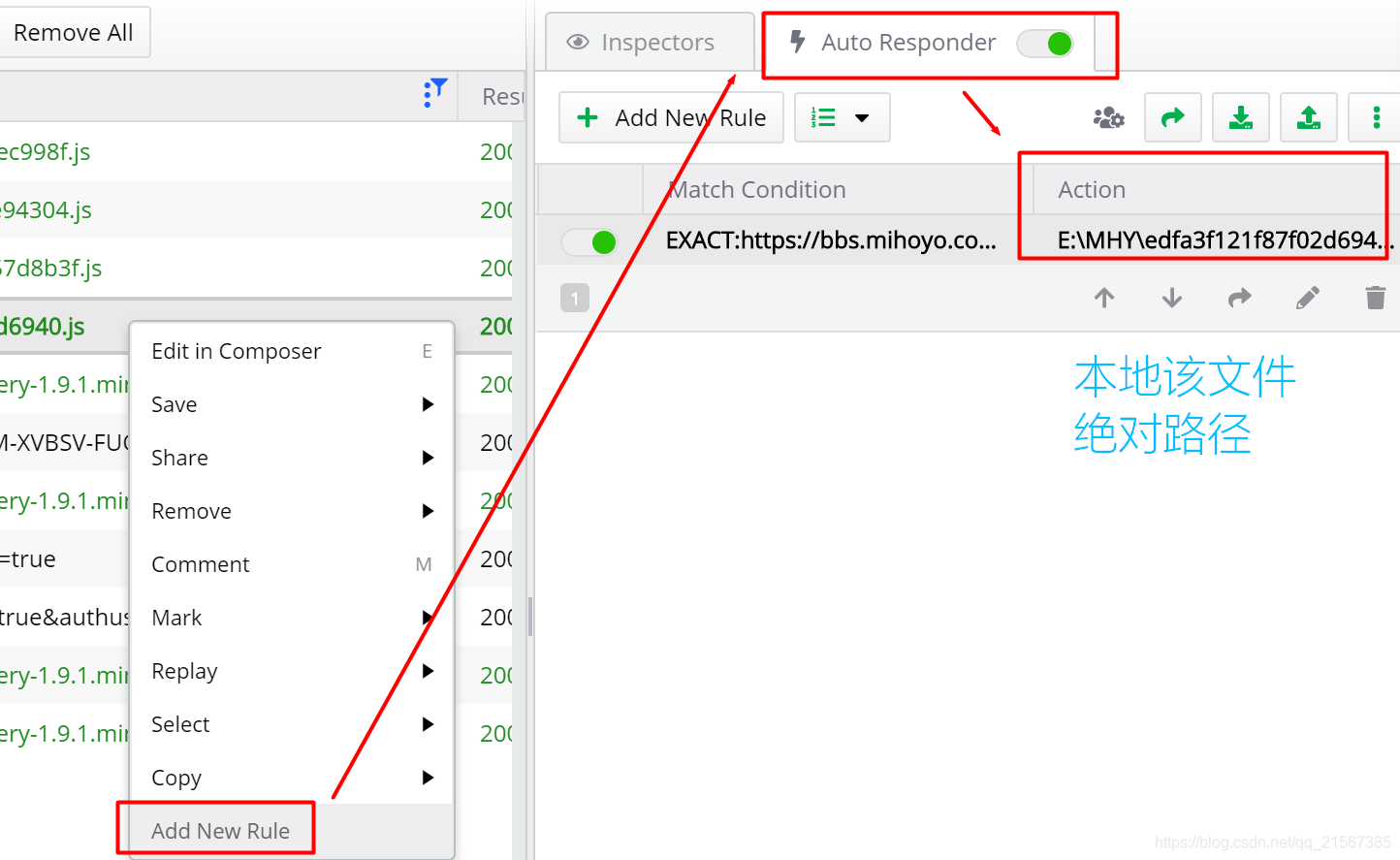 下载一份到本地,然后在 Fiddler 右侧面板配置本地拦截: