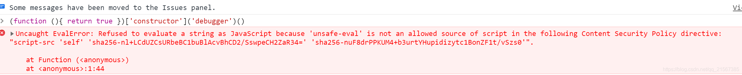 注:实际上使用 ['constructor']('debugger') 是一种 eval 的变体,在一些严格情况下会导致报错: