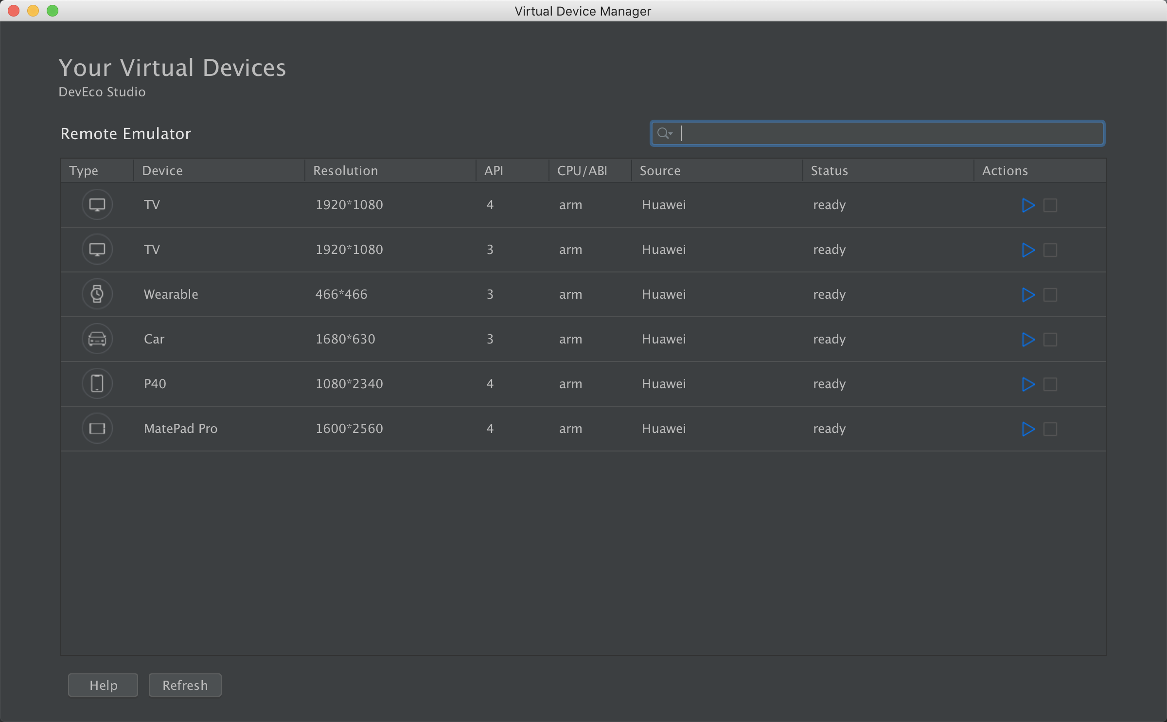 模拟器创建需要认证开发者账号后即可使用远程的机器调试,点击Tools下的HVD Manager
