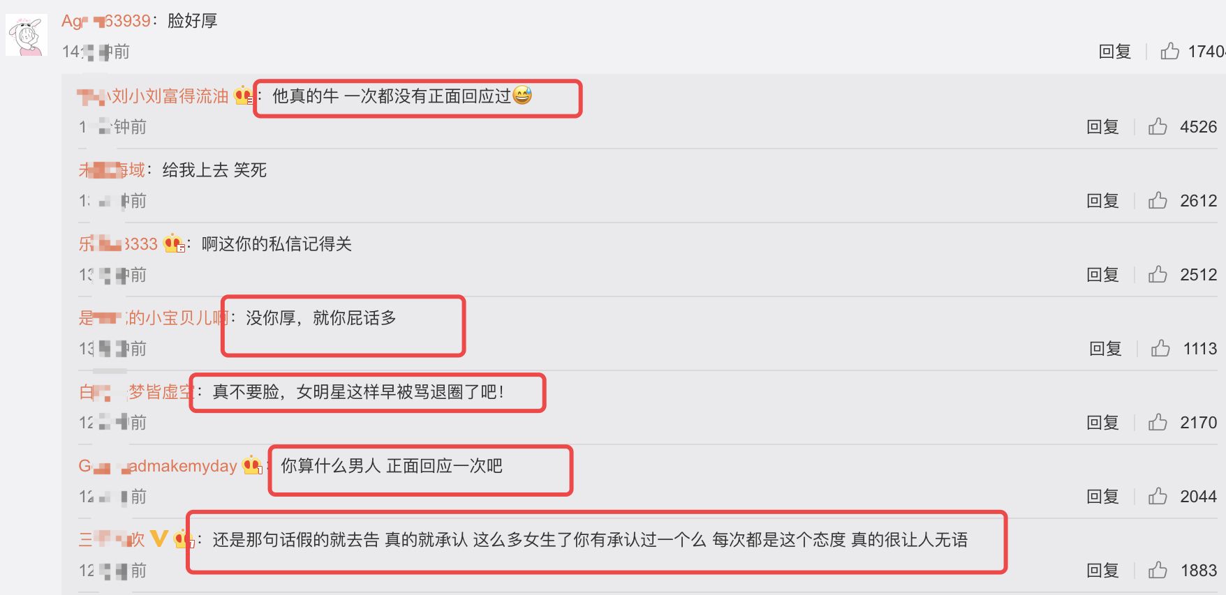 他用幽默的语气一笔带过,好像这场舆论对自己没有半点伤害,这该死的倔强,内心真是强大。他的回应中,并没有澄清和女网红之间的关系,没有说对方的言论是虚构还是真实的,仿佛把这当作一场笑话,还有点固执地嘲笑自己是“笑点”,毫无挣扎欲望。最后不忘宣传自己的新歌,这还是曾经那个热血男儿吗?