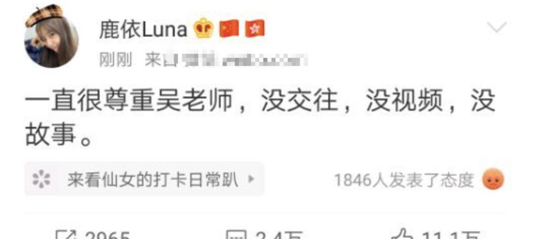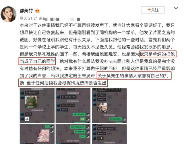 吴亦凡回应后,当事人都美竹也发文了:就这样,各自安好吧!