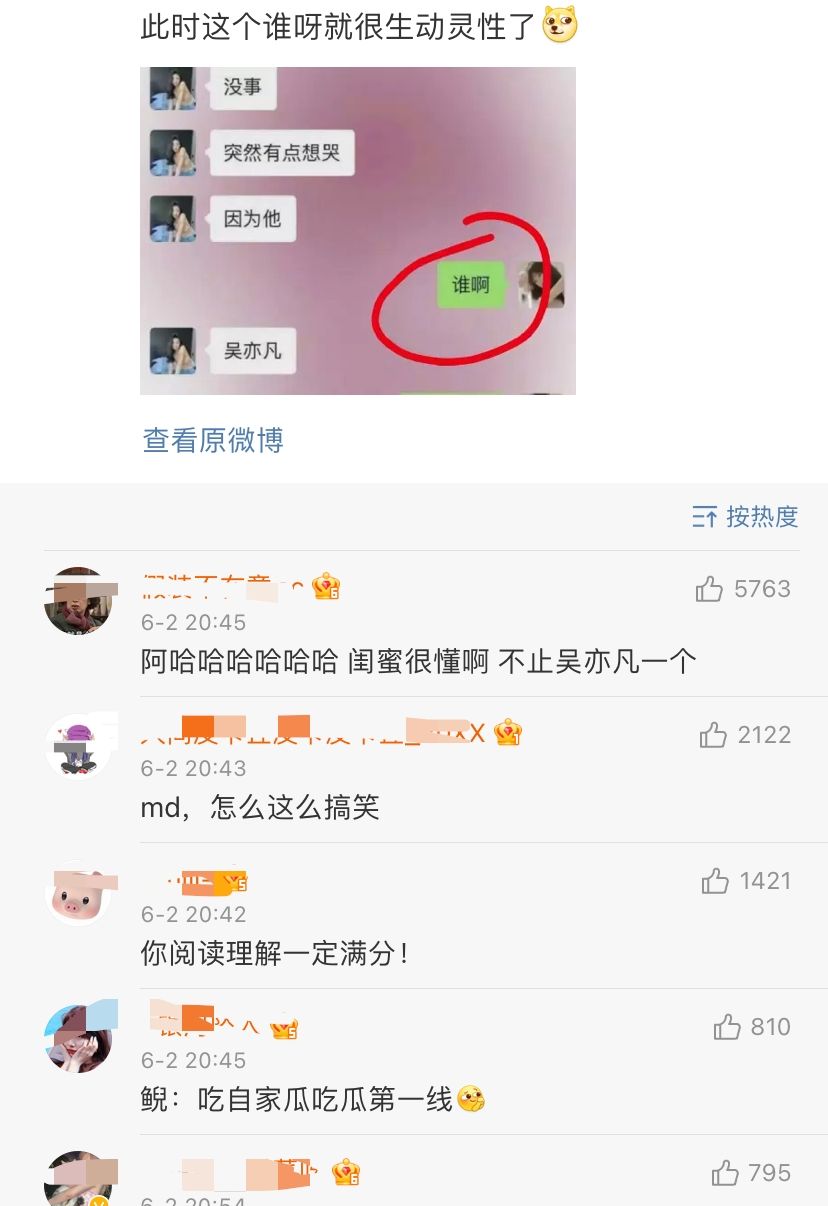 不得不说贵圈真乱,吴亦凡或许也觉得都美竹单纯好骗,但都美竹好像也在玩吴亦凡,都美竹的闺蜜曝光出聊天截图,都美竹对闺蜜说自己很难受,因为他,闺蜜还问了一句谁啊,现在网友们也懂了这句谁啊的真正含义,或许闺蜜都不知道都美竹具体因为哪一个男朋友而难过了。