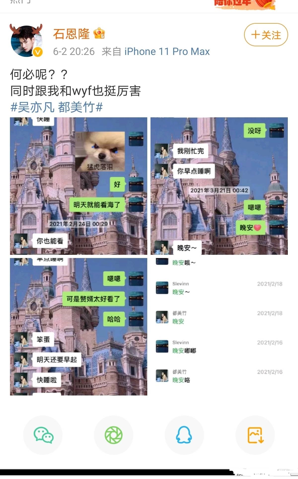 6月2日徬晚,网络上流传吴亦凡和都美竹的恋爱绯闻,疑似都美竹的朋友(网名刘美丽同学)公开发声,并配有多张截图,直指吴亦凡,声称其冷暴力。