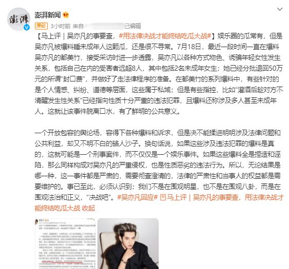 合作品牌接连解约、鹅厂公开表明态度,就连中央主办的官媒都亲自出面对此事件进行评论,这可真不只是简单的八卦新闻了。