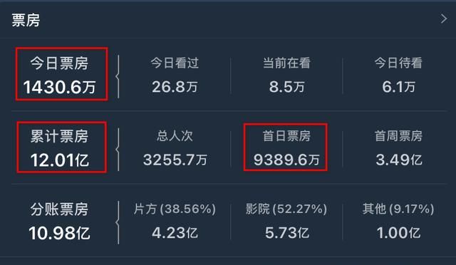 《中国医生》累计票房突破了12亿,成为了近期累计票房最高的影片。该片首日票房为9300多万,靠着不错的口碑基础,该片一直都保持着足够多的排片量。