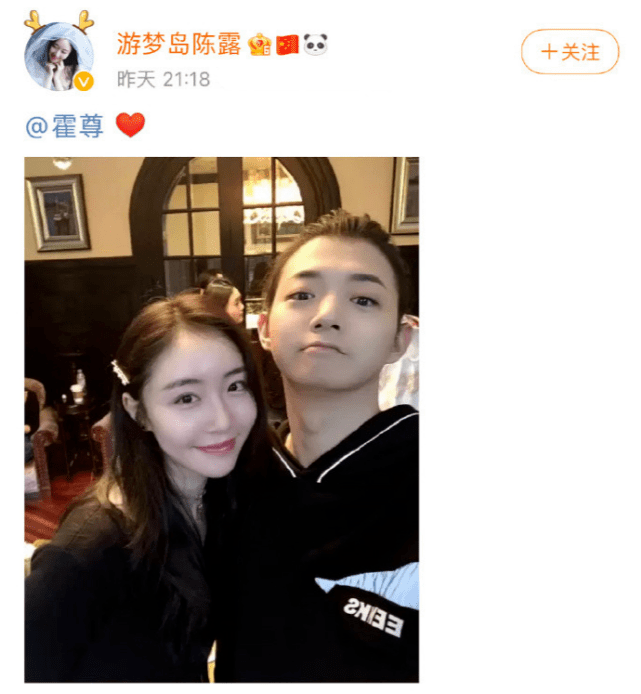 8月8日晚,当广大网友的目光聚焦在东京奥运会的闭幕式上时,舞蹈演员陈露晒出了一张她和霍尊的亲密合照,而且还专门艾特了霍尊。