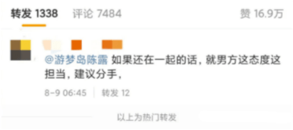 如果这位知情人士的爆料百分之百保真,那网友对陈露单方面官宣恋情是变相逼婚的质疑也就能说得通了。