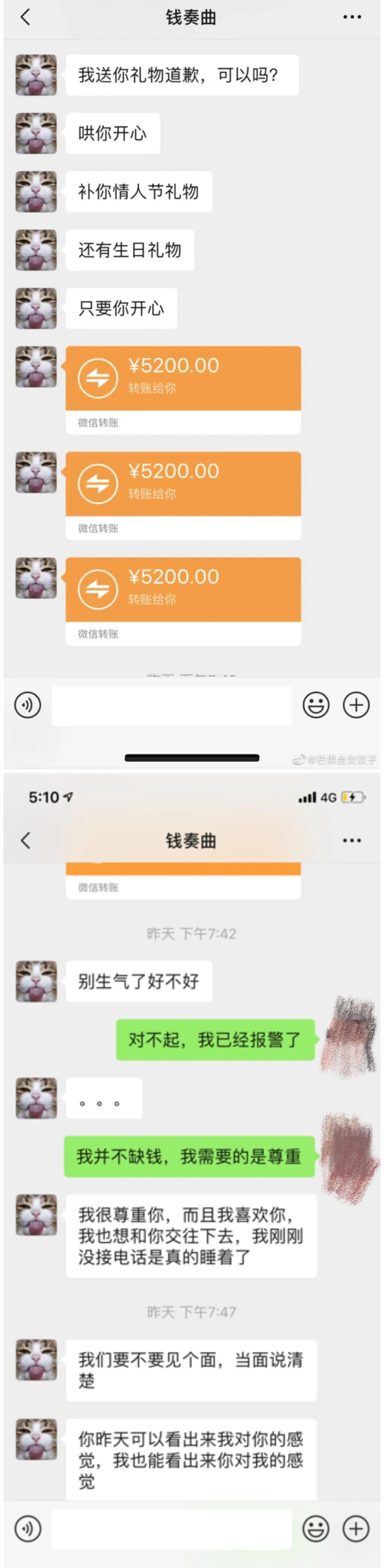 如果聊天记录是真的,如果对方真的是钱枫,那钱枫确实很过分。看钱枫聊天的样子,似乎真的是老手,一直都是轻描淡写的,即使听到女方说报警了,钱枫还不是很着急。钱枫连续给女方发了3个5200元的红包,确实有钱。