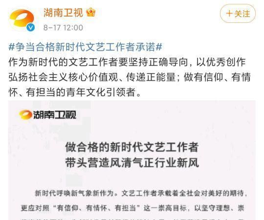 或许是为了挽回一些形象,湖南卫视8月17日,曾发起台里的主持人,签署了一份所谓的“艺人艺德承诺书”。