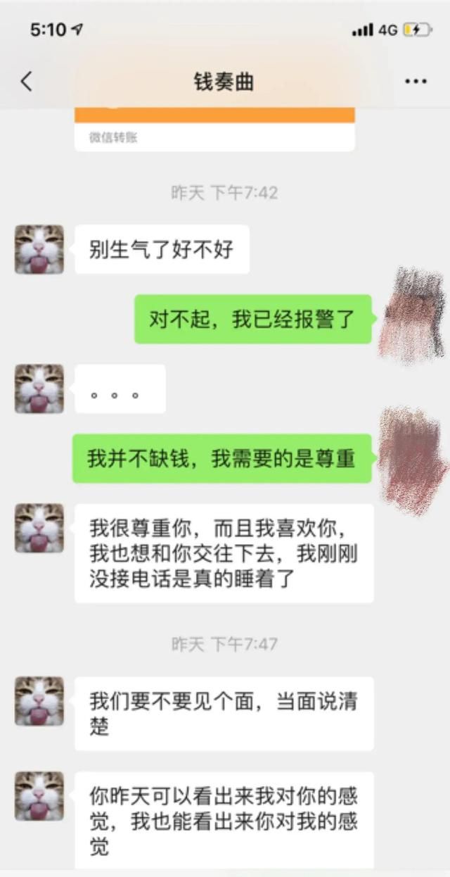不过,在女生明确提出要报警时,可以明显感觉钱枫慌了。一边连发数个红包讨好女方,另一边还不忘好话哄着,表露情愫。