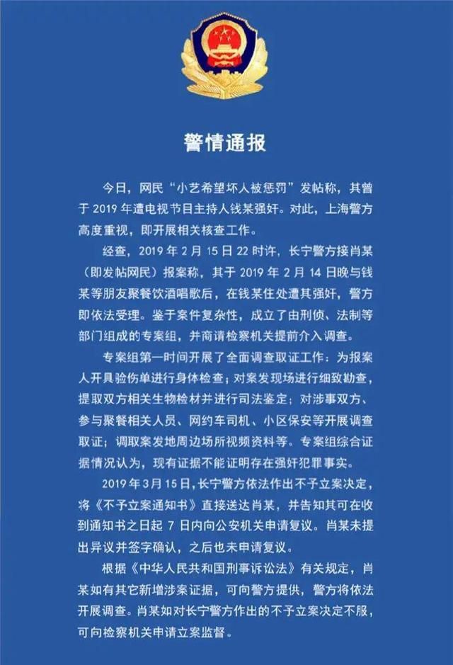 不过,在晚上11点半,上海长宁警方发布案情通报,回应关于“性侵未立案”的相关质疑。