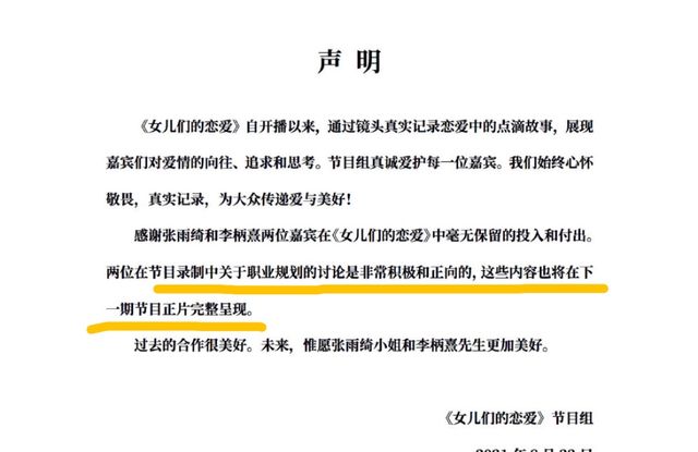 对于这番情侣组合拳,节目组发声明回应,没有恶意剪辑,正片会照常放出。