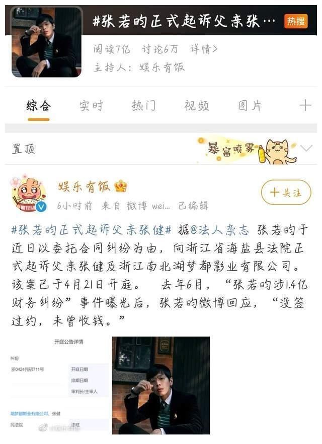 发表自话题:张若昀撤回对父亲张健起诉