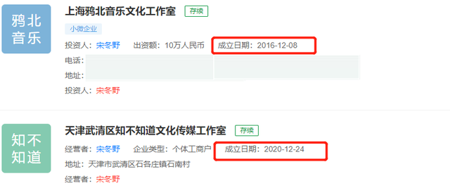 不仅如此,有人发现在宋冬野出事后到如今的五年里,宋冬野也一直没有像其他艺人一样退出娱乐圈,甚至没说背上巨额债务导致倾家荡产,反而是在这五年新开了两家公司,在2016年成立了一个工作室后,在2020年又成立了一个工作室,虽然不能说代表了宋冬野事业还在发展,但也能表示宋冬野的事业未受太大影响。