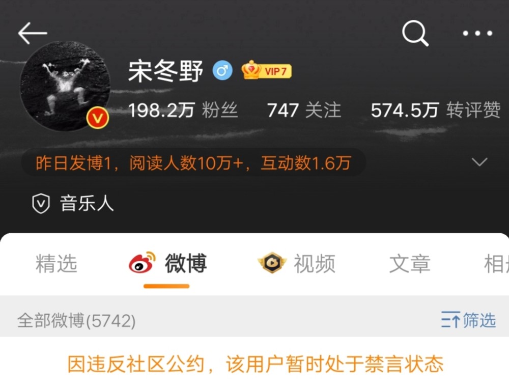 已经在公众视野前消失许久的宋冬野最近有了新动向,在10月11日深夜,宋冬野用长文记录了自己想说的话,原本以为一番叫屈能得到大众的谅解,却没想到迎接他的不仅是冷嘲热讽还有账户禁言。