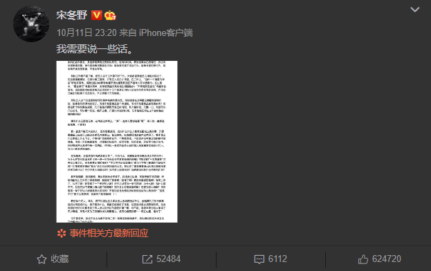 近日,民谣歌手宋冬野通过自己的社交账户发出一篇长文,控诉自己的演出因被举报而取消一事,希望能够得到一个说法。文章发出后,引发网友热议,掀起了又一轮对于劣迹艺人的讨论。