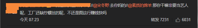 面对粉丝的应和,宋冬野也上了头,抓到当时为数不多与之唱反调的普通网友直接骂了句脏话。