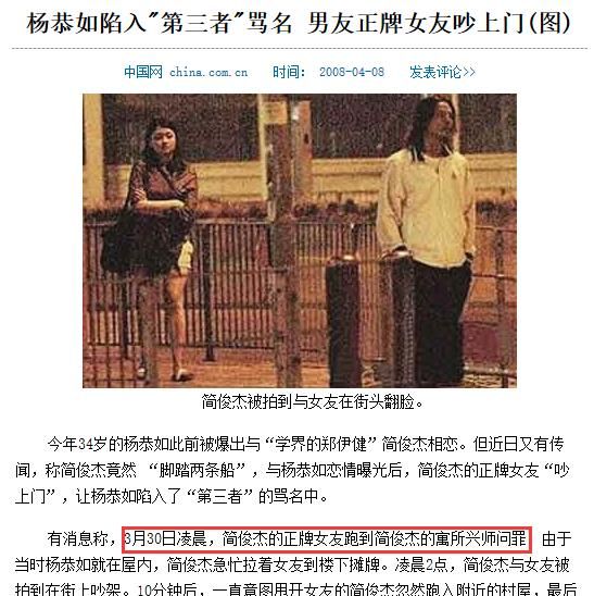 其实简俊杰在认识杨恭如之前就有女友,他上演了一出脚踏两只船的戏码。