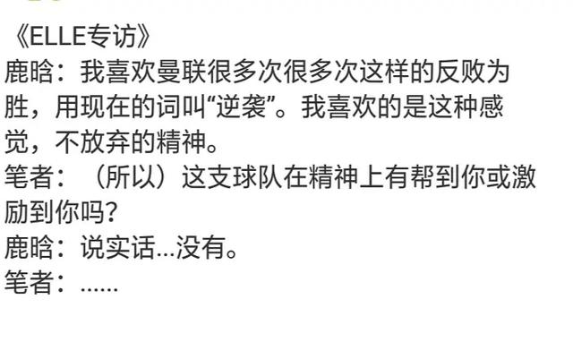 鹿晗有次杂志专栏采访,问到足球曼联对自己的影响,一般人没有也会胡诌几句吧,他是这么回答的。