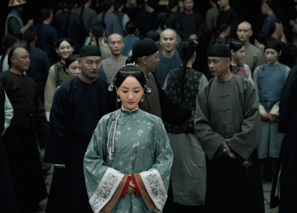 和《雪中悍刀行》的一绿全绿的画风不一样,《当家主母》里的滤镜暗亮对比强烈,每一个镜头都充满了阴森气息,剧中的演员们都脸色煞白,看上去不像活人,压抑气氛拉满,看得人喘不上气。