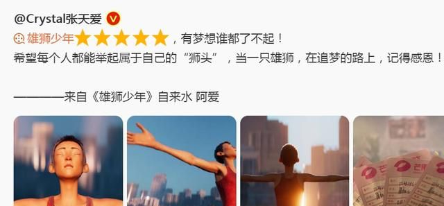 不光是吴京,还有国内明星张天爱也是主动发布了自己观影和推荐的动态,并且得到了《雄狮少年》剧组的点赞和转发。