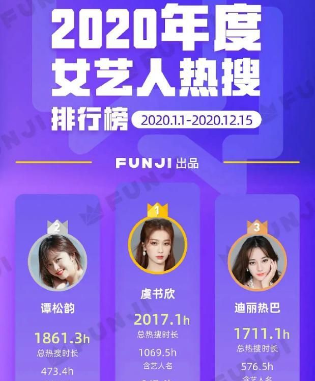 从2020年度女艺人热搜排行榜上看,综艺选秀节目确实可以给艺人带来超高的关注度,C位出道的刘雨昕排在第七名,许佳琪和孔雪儿紧随其后。