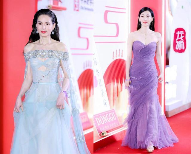 姐姐们也爱不出错的仙女裙,但柔软飘逸的裙子在她们的身上多了几分笃定沉稳。王丽坤紫色鱼尾裙自带朦胧滤镜,刚在红毯上强势秀腹肌的“姑姑”李若彤穿上仙裙也不是娇弱的,倒是像战胜归来的女将,华服加身也能看出她有一身武艺。