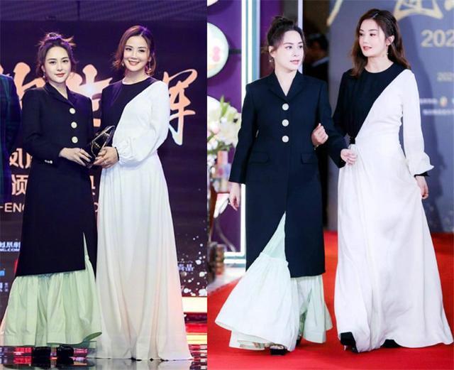 年底走红毯,天气寒冷,对于女明星们来说是一个考验,所以也有走保暖路线的女明星。比如twins姐妹花的造型就挺温暖的。阿娇Chloe的大衣配长裙造型非常保暖,深色修身外套也非常修身显瘦,阿sa的黑白拼色和阿娇的呼应,虽然姐妹花的造型不够惊艳但够保暖~