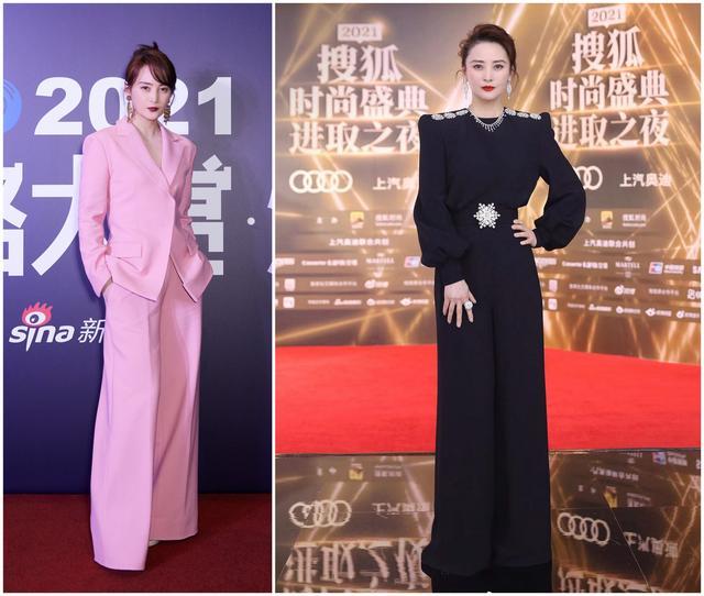 走红毯,蒋勤勤似乎更爱利落的风格,所以几场活动都选了利落的阔腿裤。