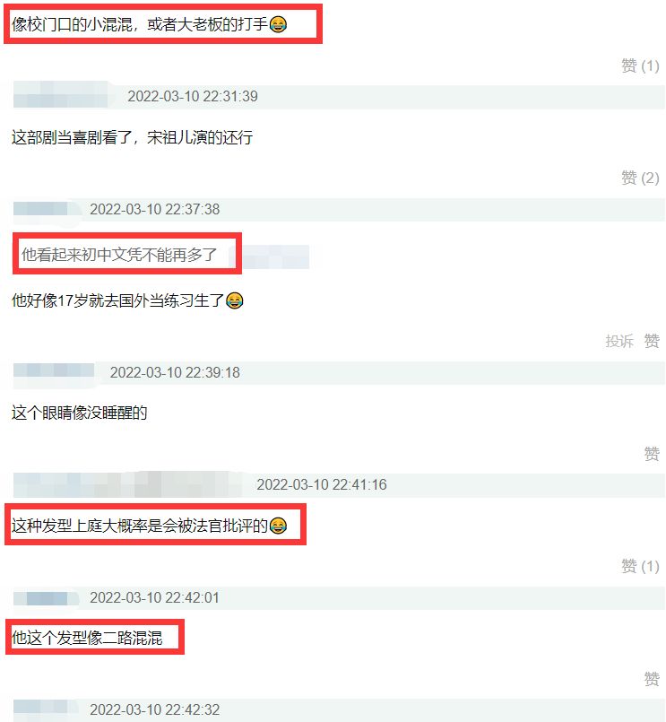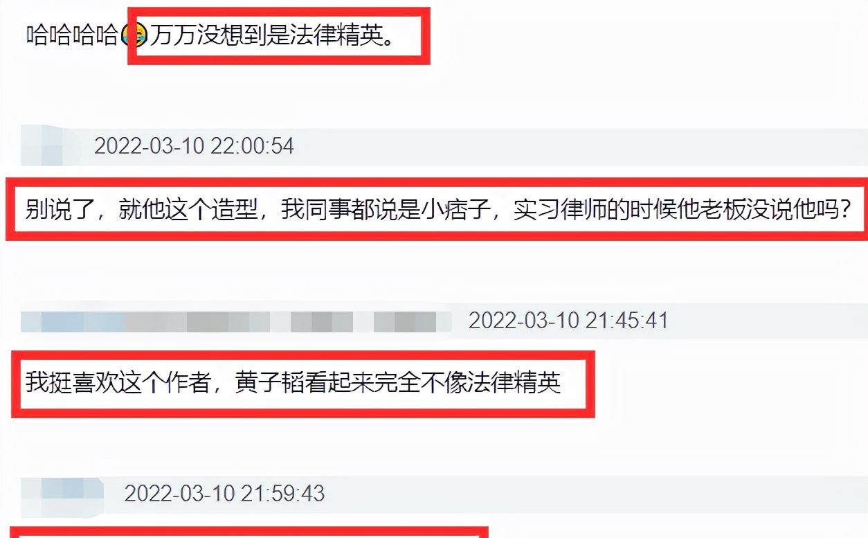 所以电视剧播出后,黄子韬这个造型引起了很多观众吐槽,但凡换个造型,都不至于让人这么代入不进去,这个造型显得很不稳重,他也只是一个律所合伙人,但面对别人时态度特别拽,角色塑造上有点偏离了律师的设定。