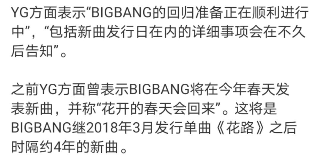 YG方面称有关新曲的详细内容会在不久之后告知。