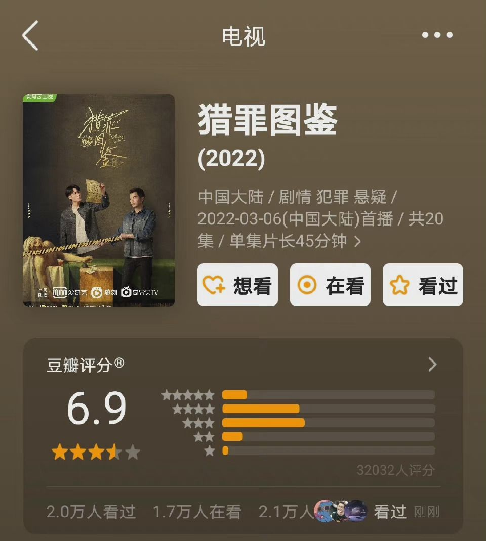 《猎罪图鉴》豆瓣开分6.9▼【标红】