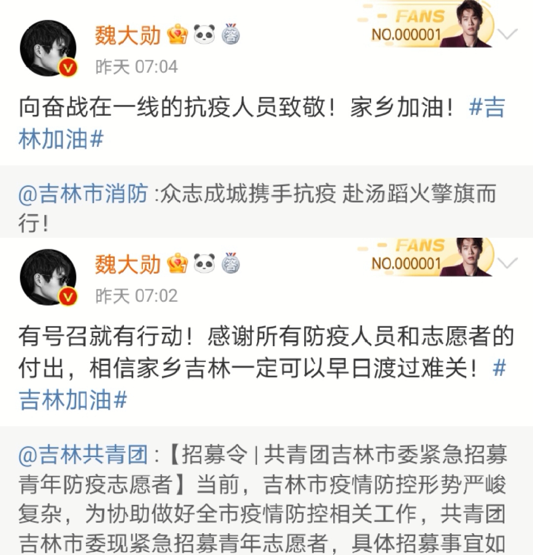 众多吉林籍艺人也为家乡抗疫贡献自己的一份力量。