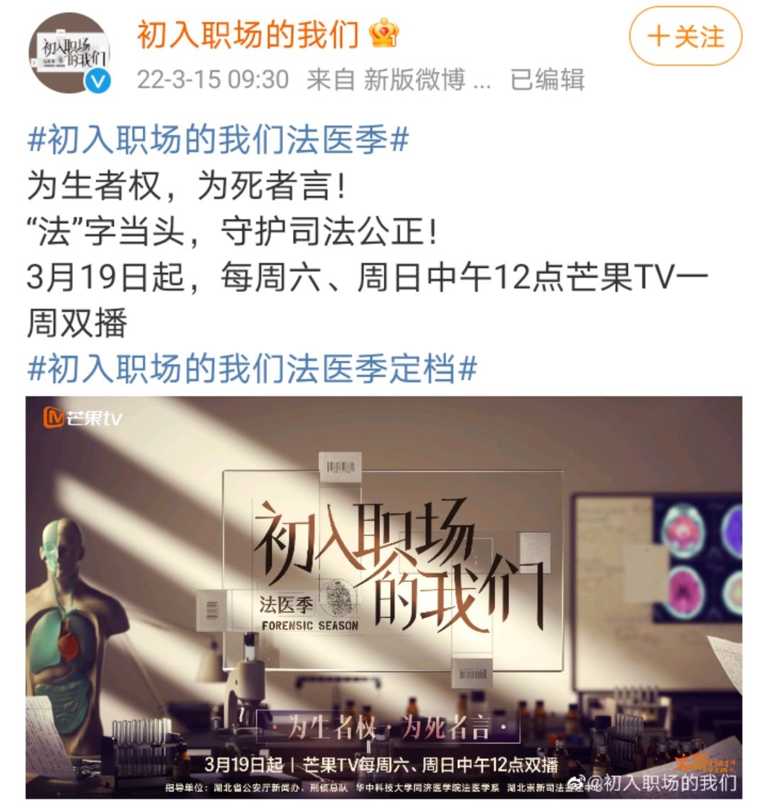 《初入职场的我们》昨日官宣,这一季的职业是法医!