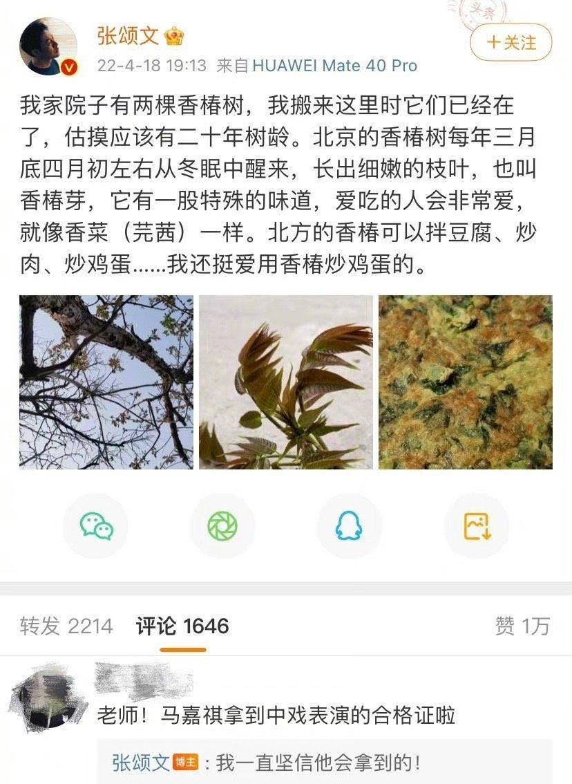 #张颂文 马嘉祺# 马嘉祺通过中戏复试,有粉丝在张颂文微博报喜,张颂文回复:“我一直坚信他会拿到的!”
