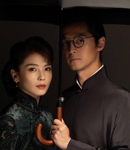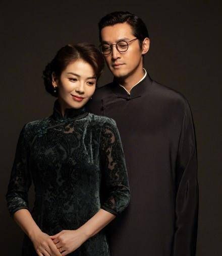 这组民国风的剧照格调很高,虽然背景和两人的穿搭都是以深色为主,渲染了一种沉稳和大气的氛围,民国风的特色就是以深色塑高级,刘涛的这一身墨绿色丝柔镂空绣花旗袍就展示了民国时期的富家太太穿搭,从材质到设计到最后的剪裁都是低调又有品位的,若隐若现的手臂更添一份性感。