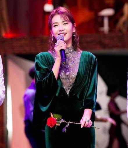 刘涛在《跨界歌王》里也重现了国民时期的大上海,同样也是选择了,墨绿色丝绒质地的旗袍式礼服,不过和上面那身非常正式优雅的旗袍不同,这身旗袍更有设计感,采用了宽大飘逸的袖口和深V设计的领口,性感又迷人。搭配非常夸张的钻石项链整个人贵气十足,如果说上面的刘涛演绎的是民国时期的贵妇,那么《歌王》上的刘涛就是诱惑又有吸引力的上海歌女。